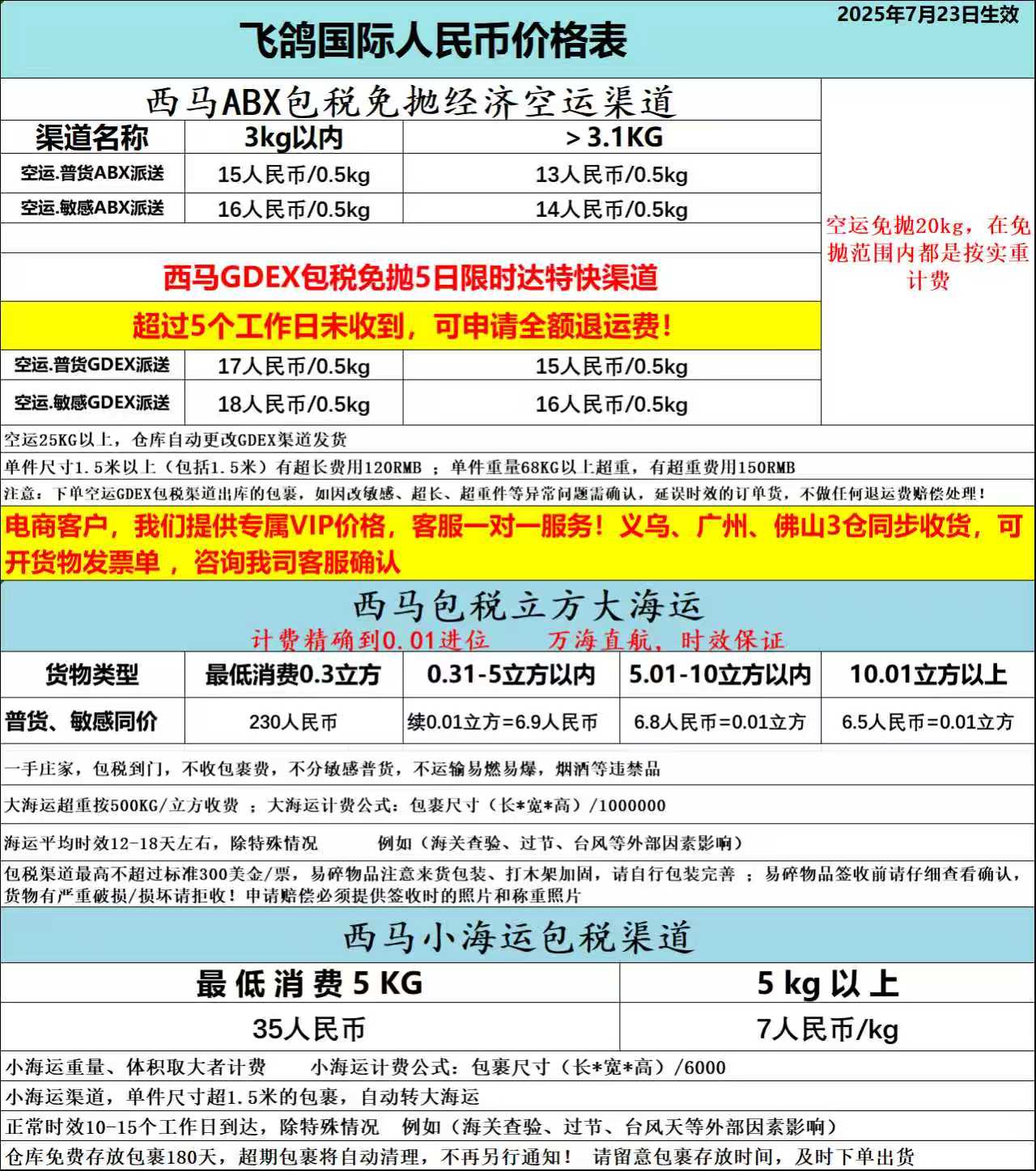 * 默认体积重与实重比较,取较重者计算运费,免抛/半抛优惠请参考报价说明。